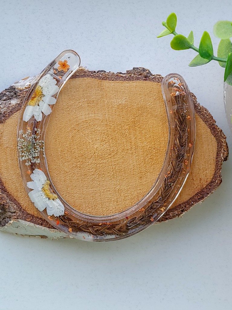 Heel blij met m’n mooie epoxy hoefijzer met het haar van m’n lieve paard Chico .